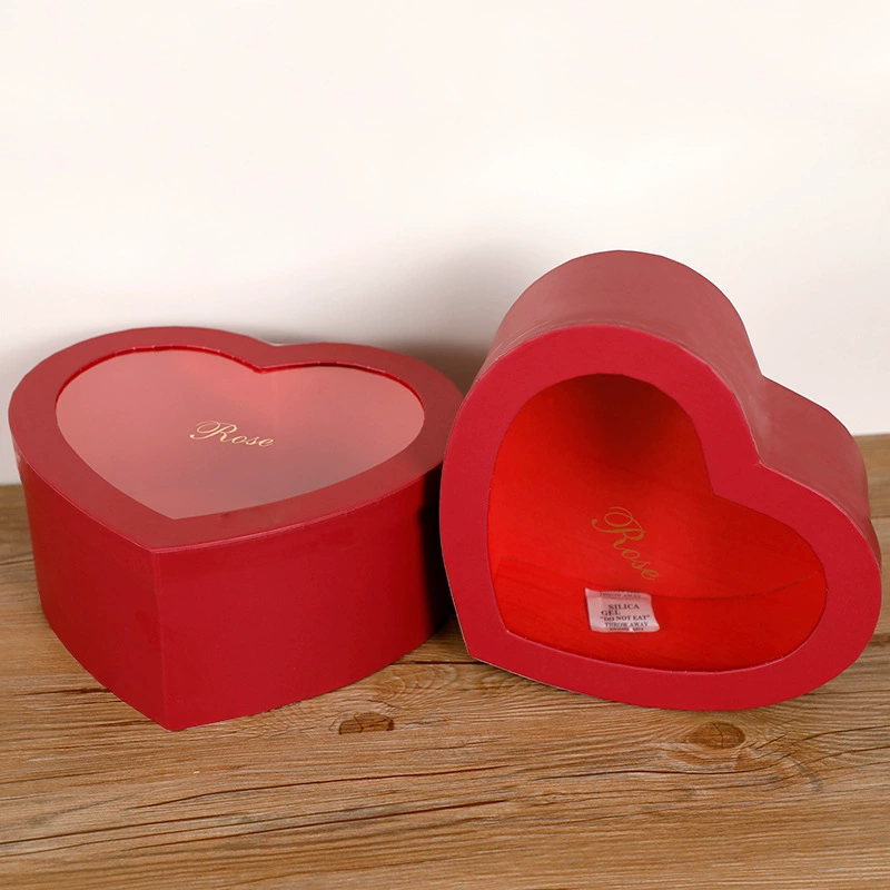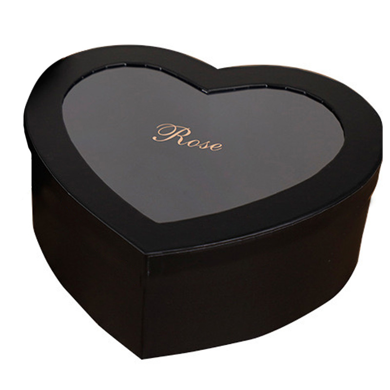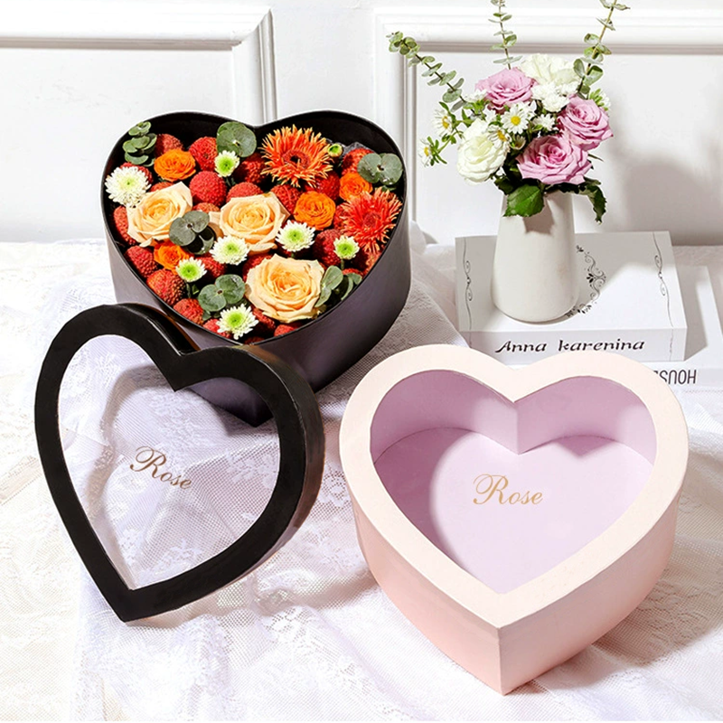 情人节鲜花玫瑰花束包装盒套二镂空心形烫金花盒透明开窗花艺礼盒