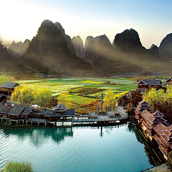 桂林阳朔一日游 跟团遇龙河竹筏漂流桂林旅游纯玩银子岩世外桃源