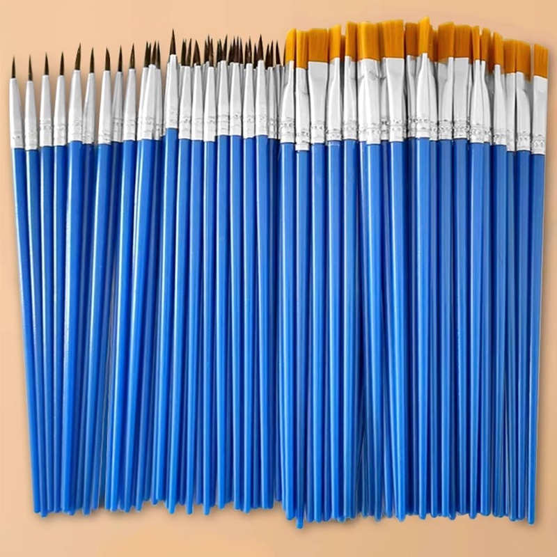 蓝色塑料杆尼龙毛画笔 数字勾线笔儿童DIY石膏油画笔涂鸦涂色丙烯颜料画刷笔描线笔水彩水粉绘画工业专用笔刷