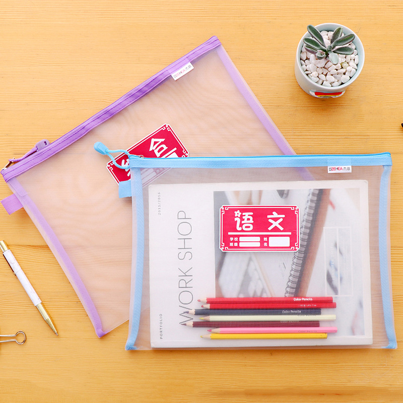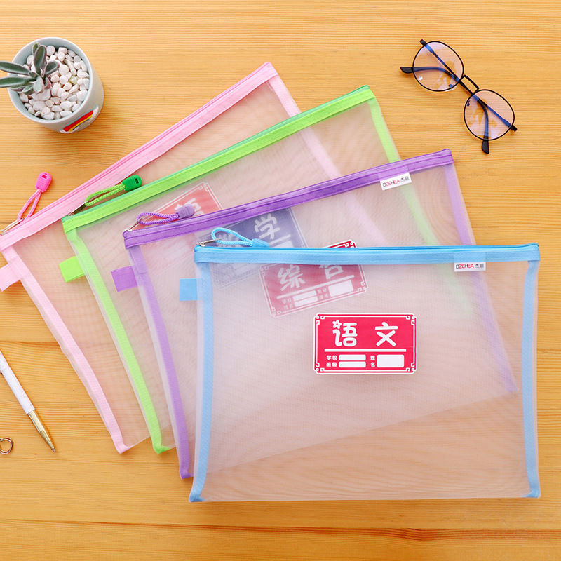 a4拉链袋文件袋学科袋办公学科分类收纳透明学生用加厚防水档案中小学生科目试卷收纳装作业文具网格补习袋