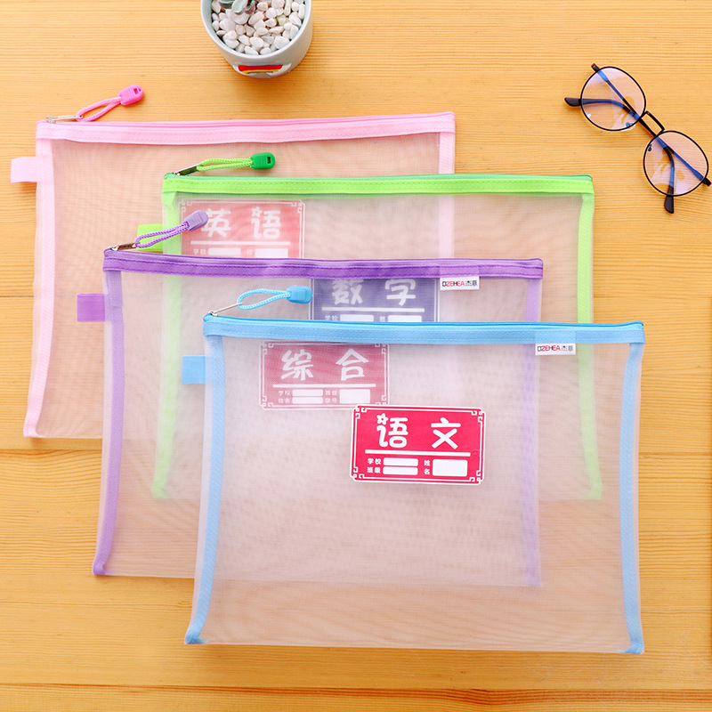 学科科目分类文件袋拉链式双层大容量小学生用资料书本课本分科书袋试卷收纳袋学生装卷子作业袋子A4透明网纱