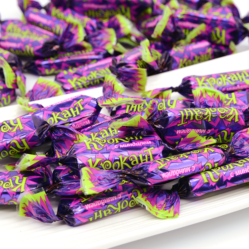 俄罗斯糖紫皮脆皮榛仁纸皮巧克力糖果年货喜糖零食500克