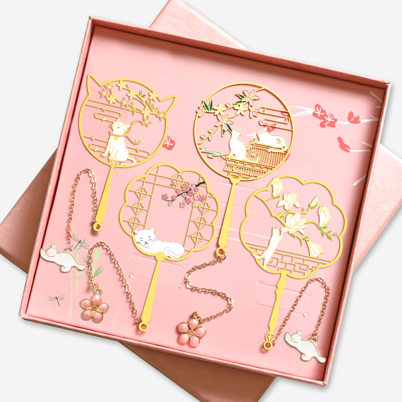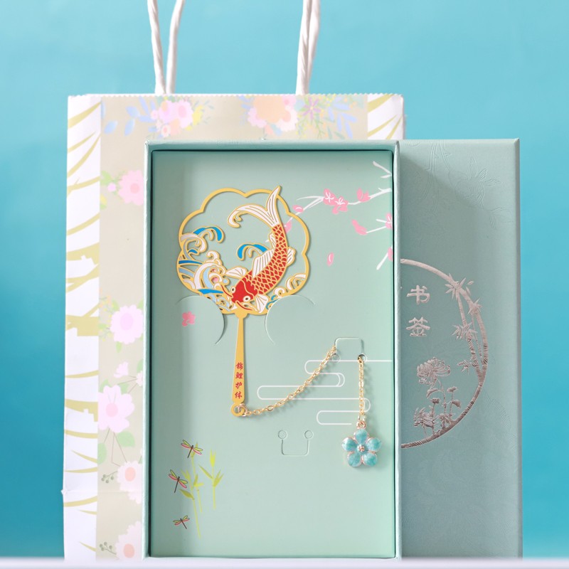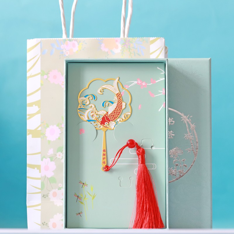故宫文创锦鲤金属书签一路有你感谢师恩教师节书签精美礼物免费刻字团扇书签吊坠毕业黄铜古典中国风