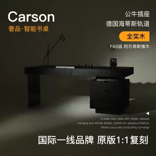意式极简轻奢书桌高级感去客厅化纯实木开放书房沙发后长条电脑桌