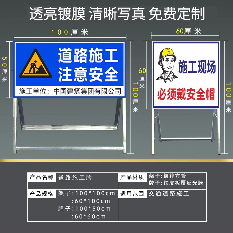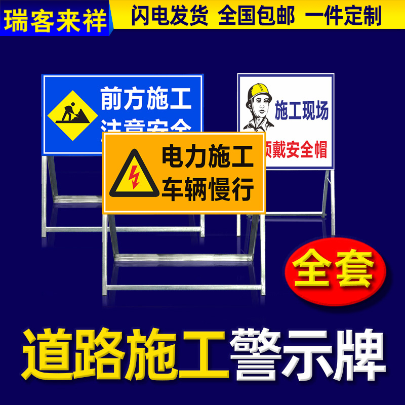 减速慢行立式架子定制铁皮交通标志牌指示牌引路牌路面前方道路施工警示牌建筑告示牌折叠反光工地标识牌工程