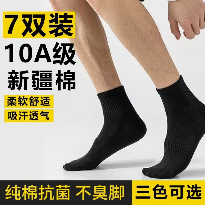 袜子男纯棉防脚气防臭吸汗抗菌成人女士青少年中筒款秋冬商务10a7