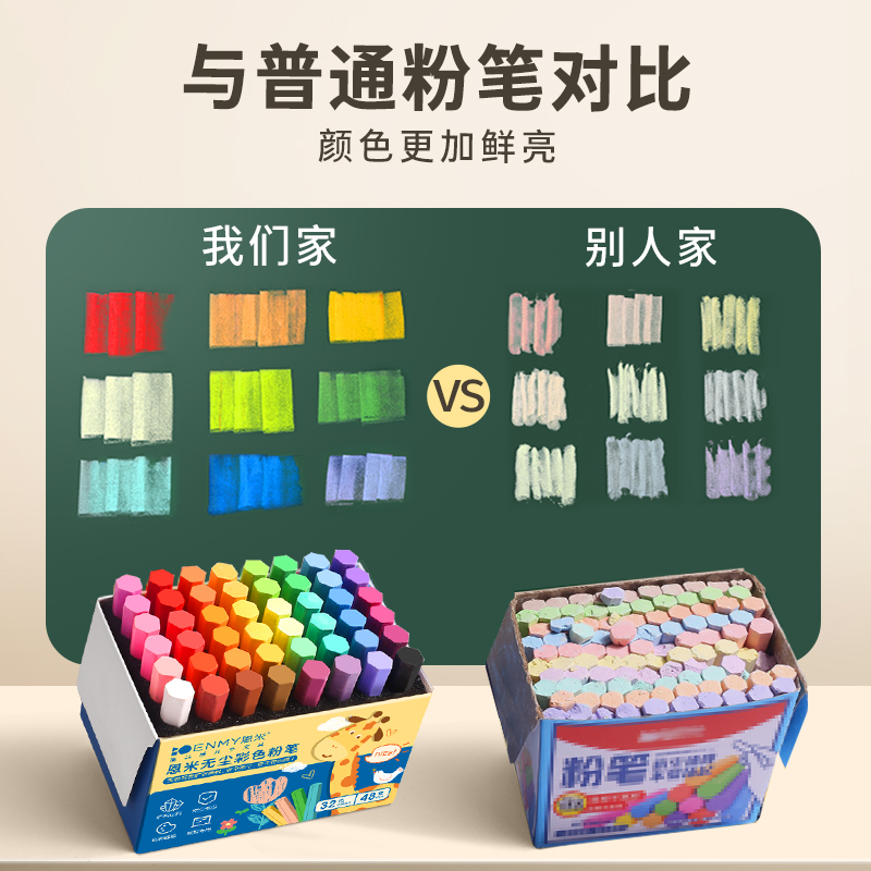 恩米彩色粉笔无尘无毒儿童黑板报家用教学教师专用可水洗红白色颜色鲜艳多色粉笔套无粉尘粉笔蛋糕套装幼儿园