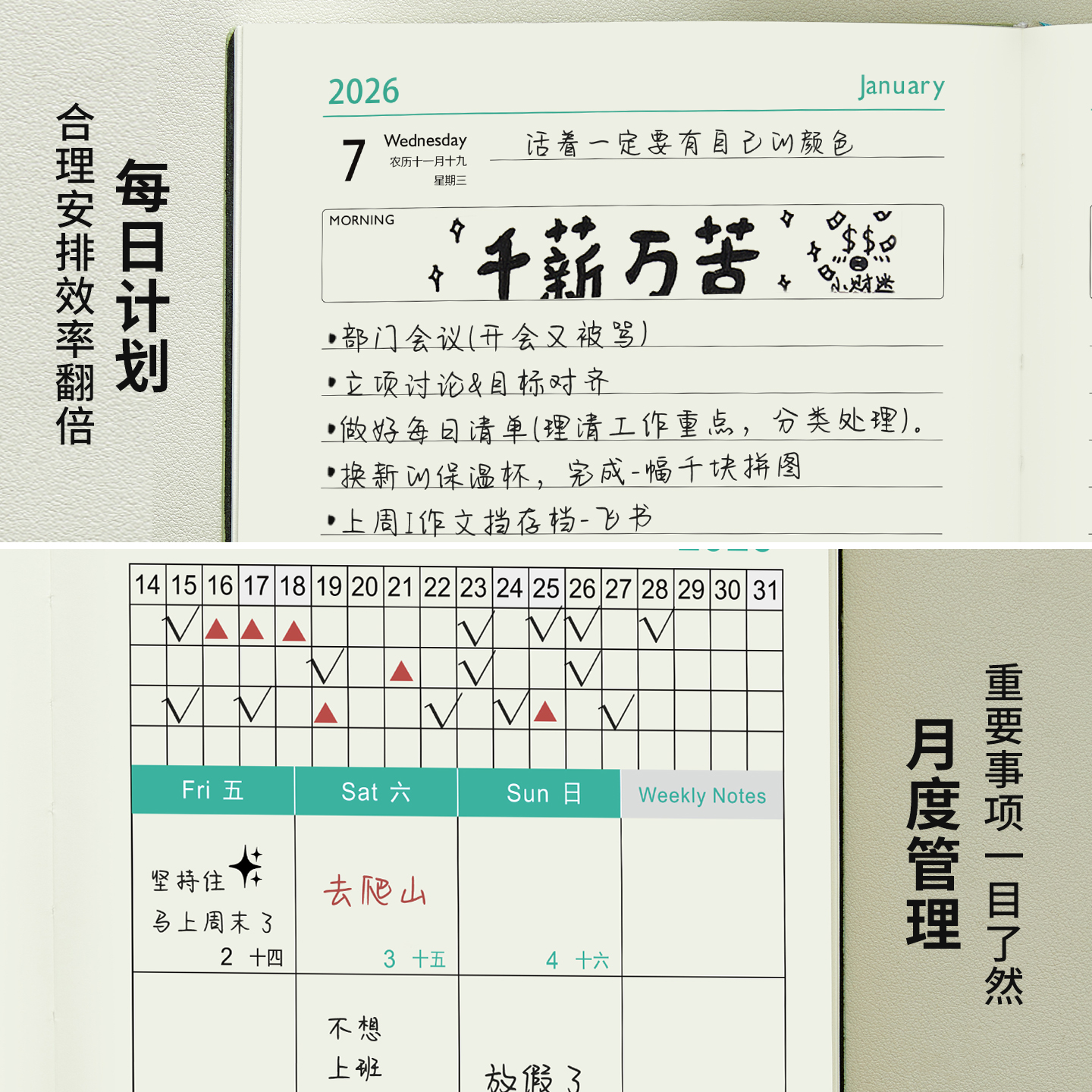 2026年日程本新款笔记本本子一日一页工作计划表加厚日记本A5时间效率手册办公工作用日历记事本365天可定制