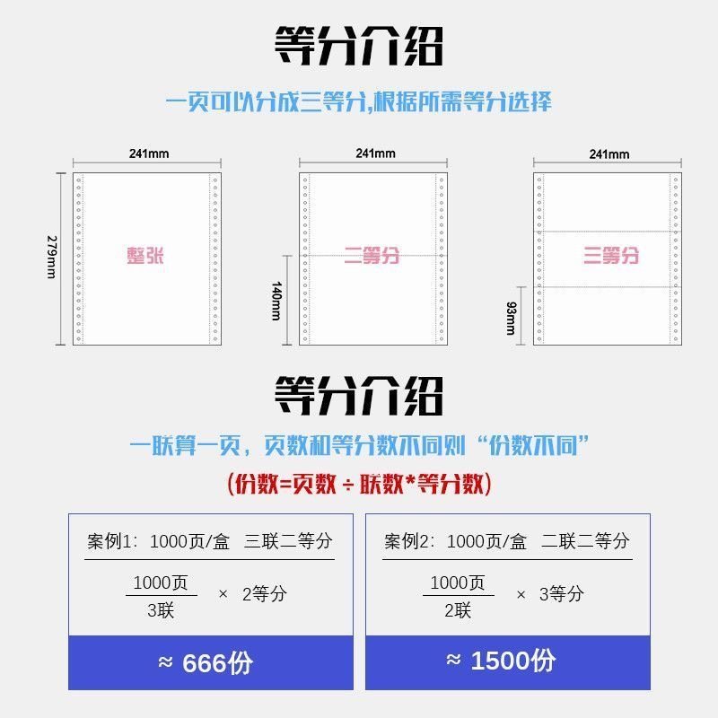 241双撕边多联1-2-3等分针式电脑打印纸发货单出库清单可做特规