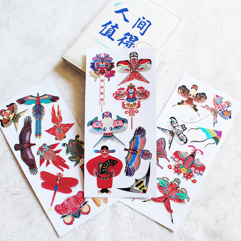 风筝贴纸中国非物质文化遗产传统文化儿童学生手抄报作业春天贴画