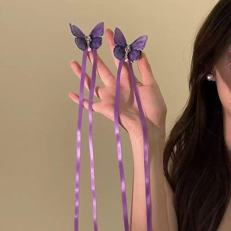 邓紫棋许嵩演唱会应援紫色飘带蝴蝶发夹音乐节侧边夹精致发卡发带