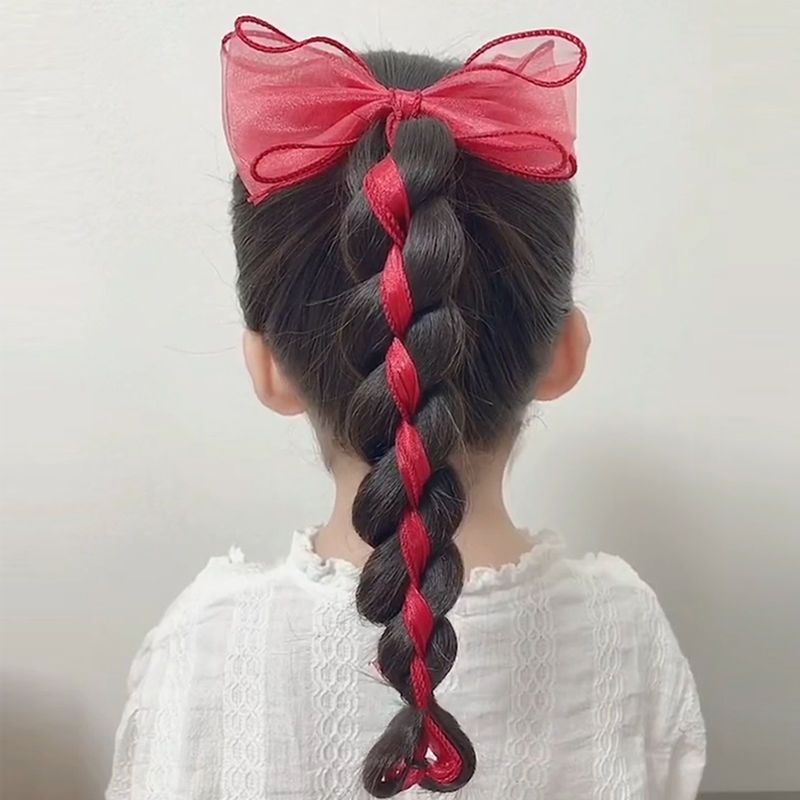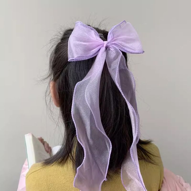 儿童经典超长飘带蝴蝶结发夹纯色雪纱可编发气质发饰女童甜美发卡