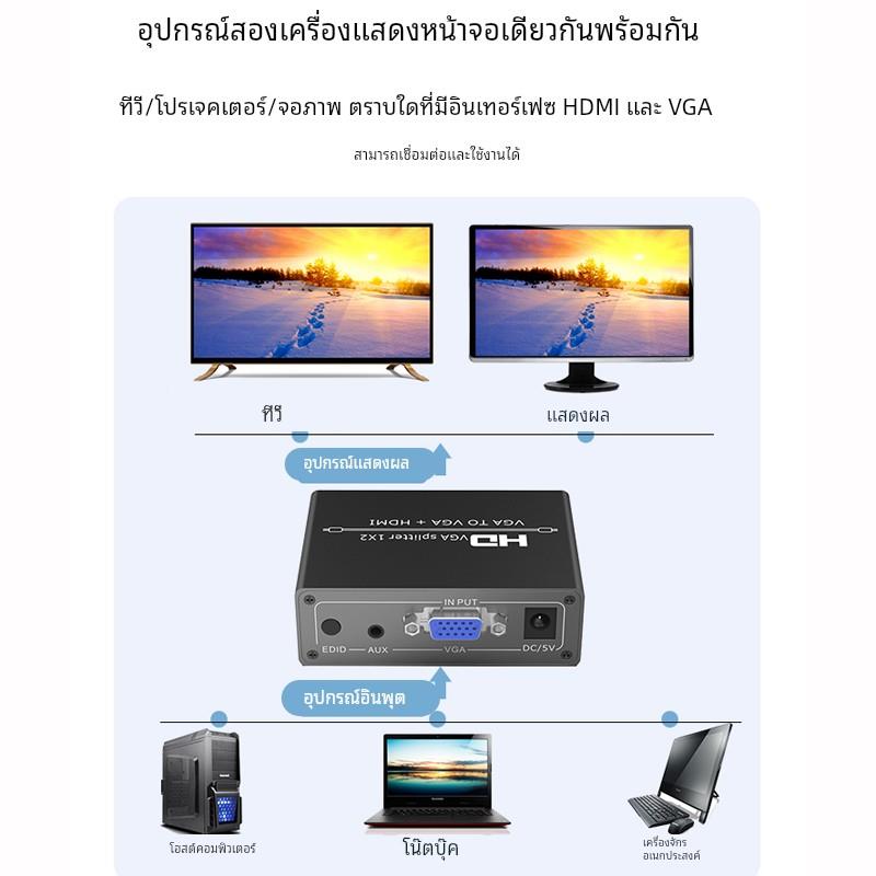 VGA转HDMI+VGA转换头线带音频一分二电脑接显示器投影机输出同时