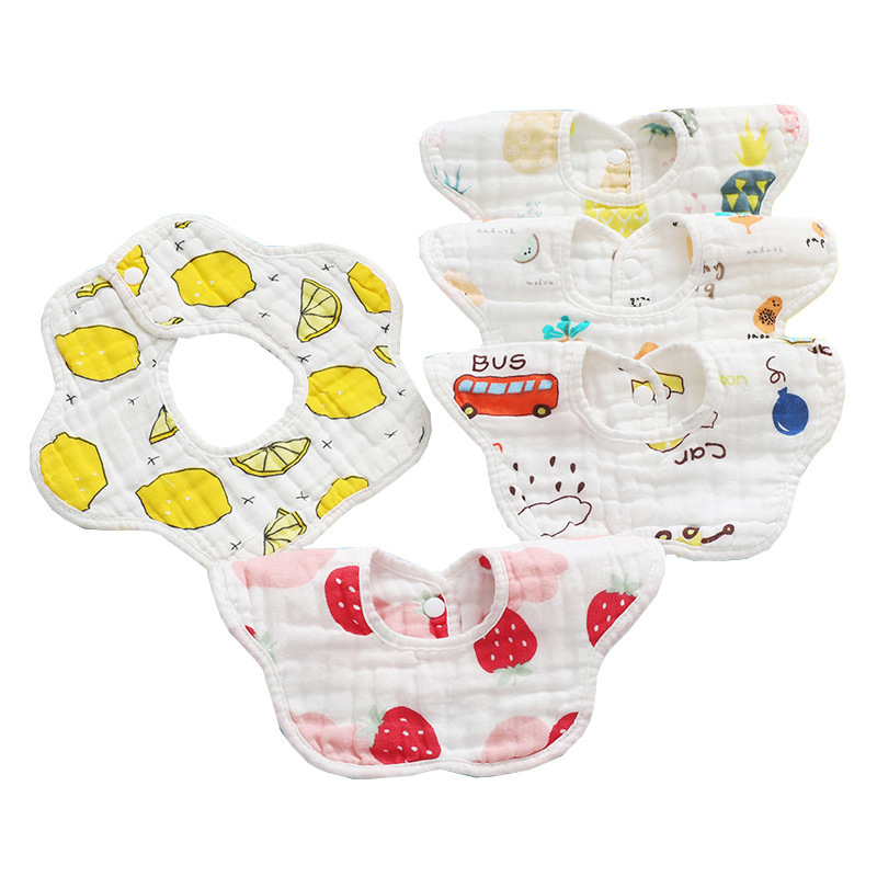 嫚熙婴儿口水巾纯棉宝宝花瓣防水围嘴夏季薄款可旋转新生口水围兜