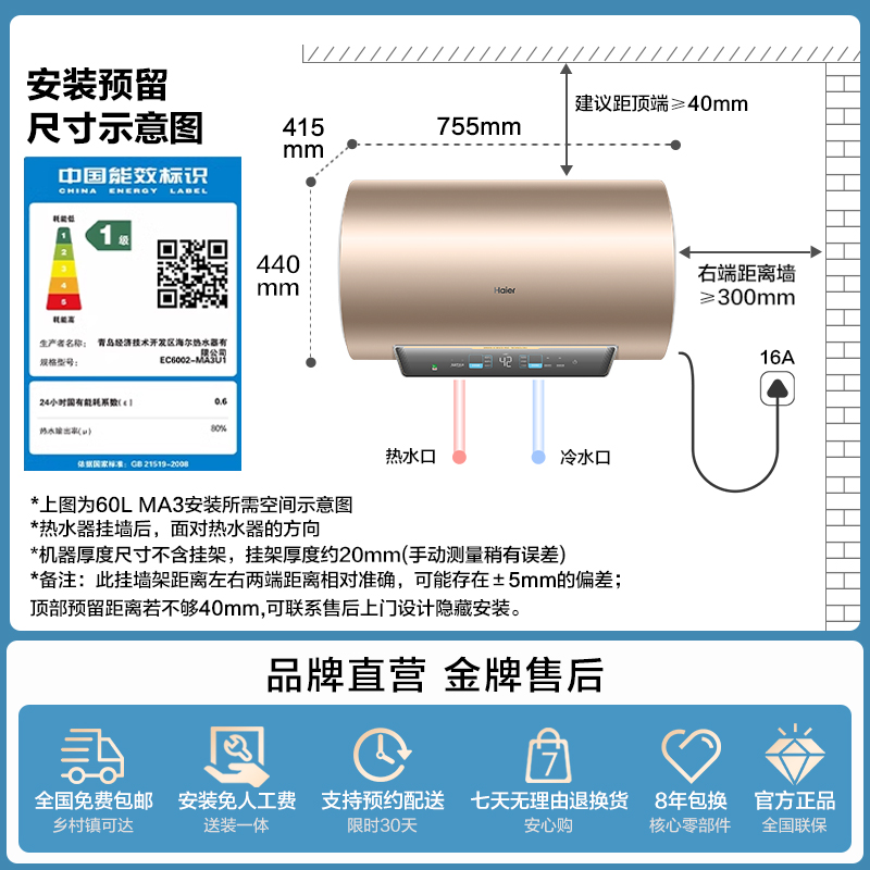 [政府换新补贴]海尔电热水器官方家用一级能效ECO1/MA3/MC3/MC7