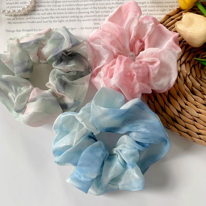 莫奈花镜~蓝色雪纺扎染大肠发圈ins风淑女气质头饰发绳盘发器温柔