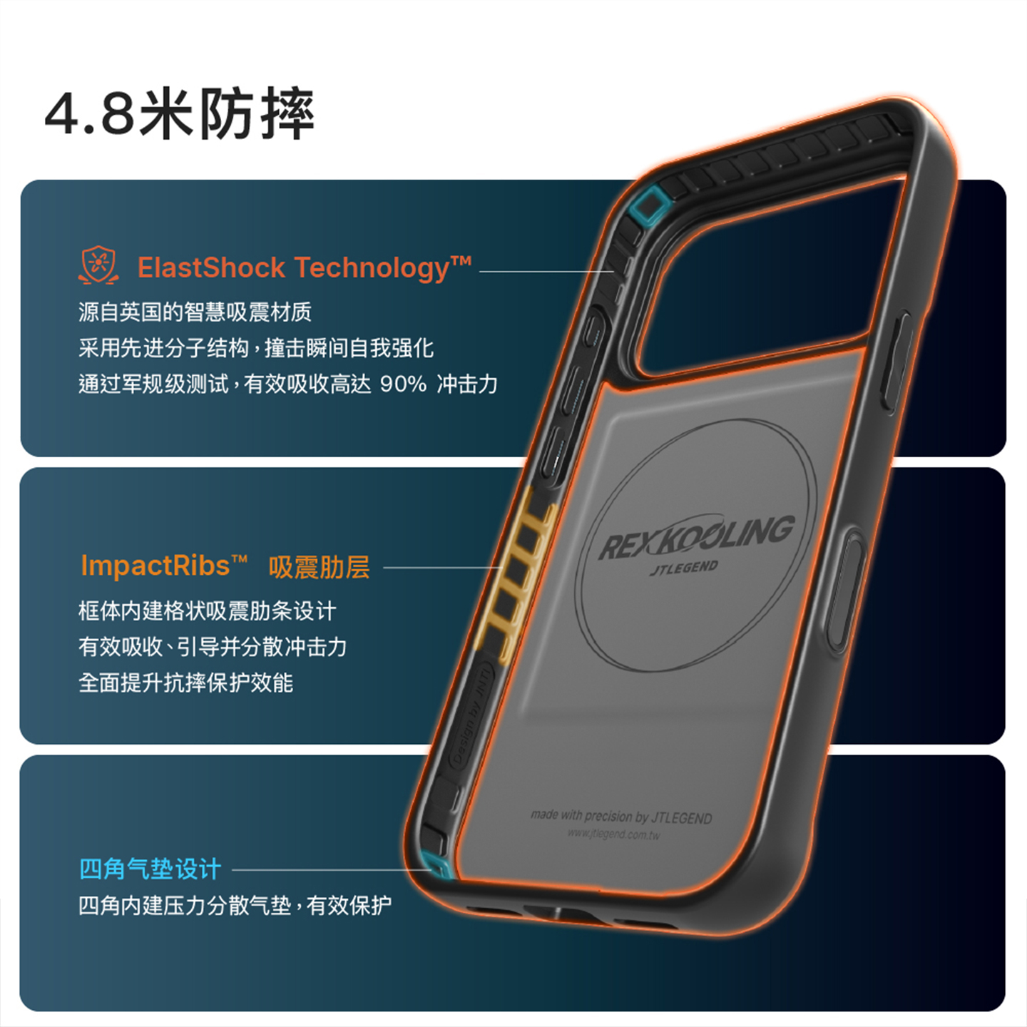 jtlegend适用2025苹果17promax磁吸手机壳17pro轻薄360°支架二合一防摔散热带相机按键全包保护套磨砂抗黄新