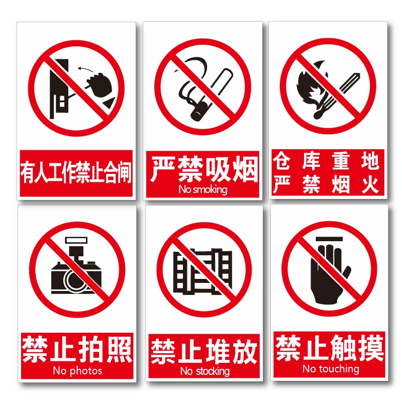 有人工作禁止合闸标识标牌严禁烟火提示仓库重地闲人免进安全标志贴纸注意防火警示贴当心触电墙贴标志牌