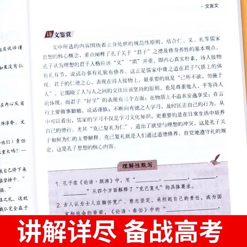2025高中文言文完全解读+古诗文72篇注释及赏析全解一本通配套人教版高中生必背古诗词和文言文高一高考语文专项训练必刷题备