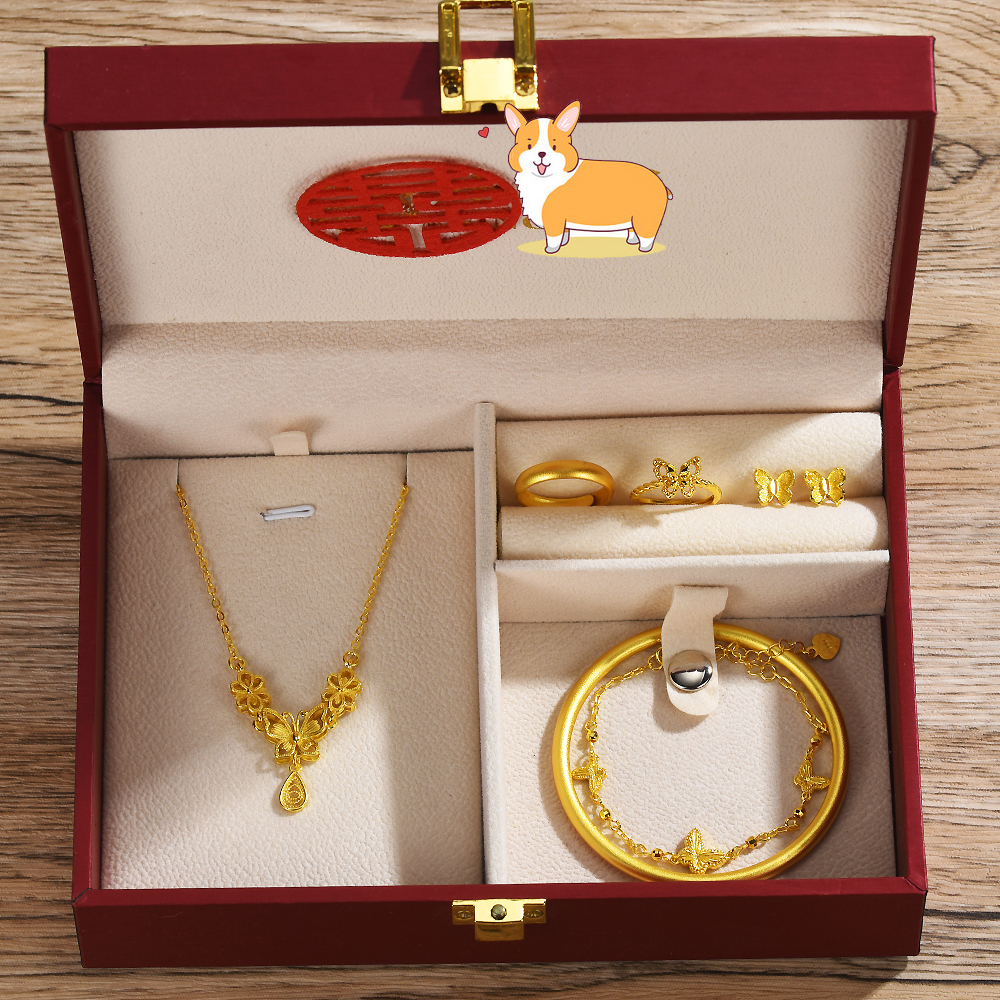 假三金首饰一套结婚仿真五金套装订婚摆台道具婚礼嫁妆假黄金手镯