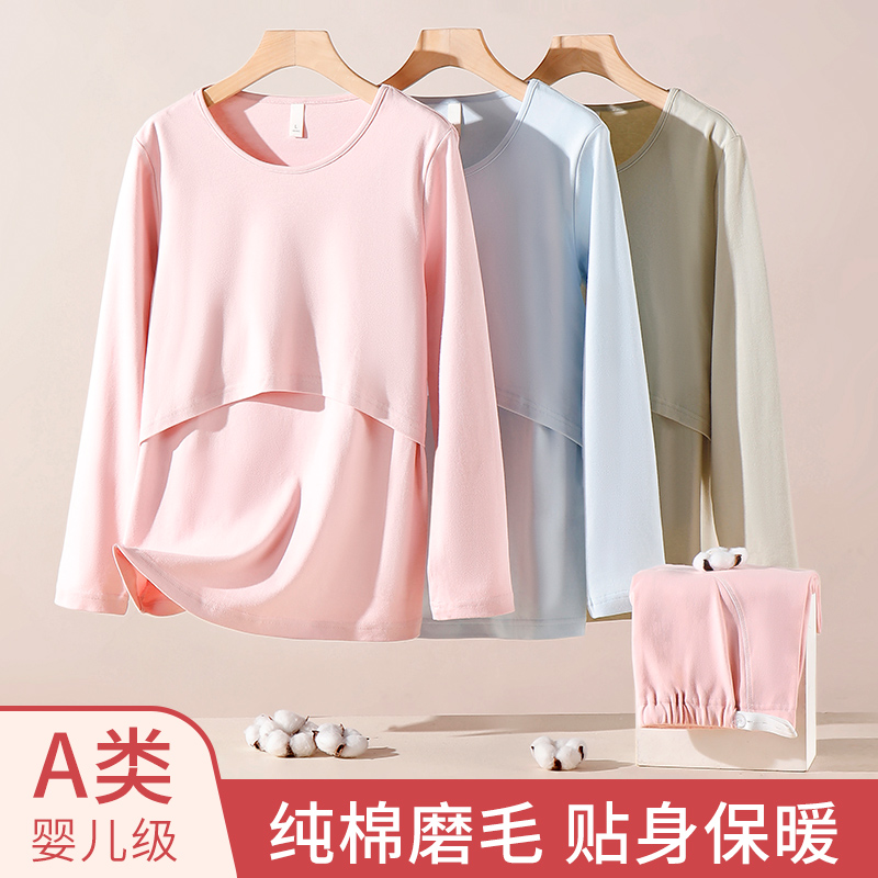 送胸垫丨纯孕妇秋衣秋裤套装棉产后哺乳衣棉毛衫睡衣产妇月子服冬
