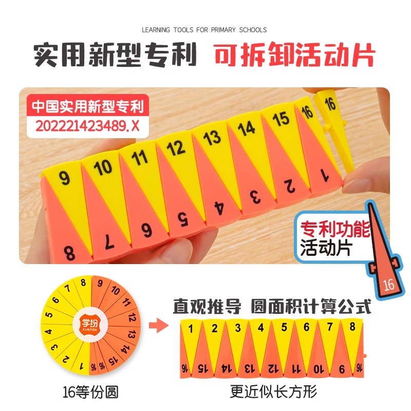 学纷圆周率周长圆面积公式推导演示器6年级数学学具16等分教具学3滚轮