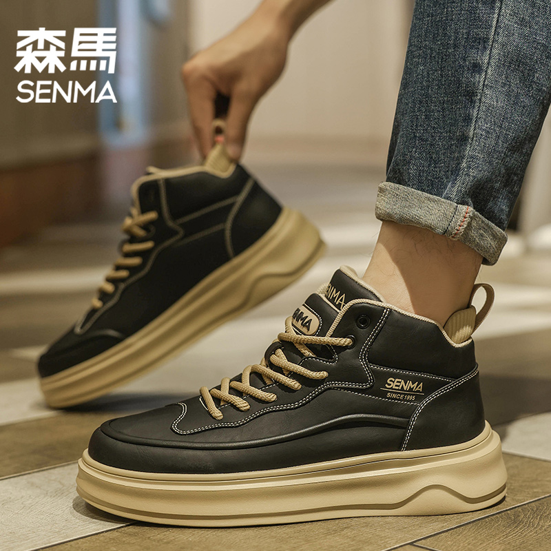 SENMA/森马男鞋新款秋冬时尚户外休闲中帮板鞋增高耐磨小白鞋乐享