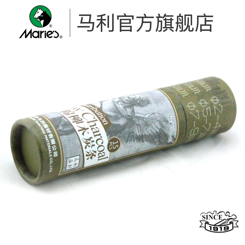 马利木炭条棉柳木素描炭笔美术生专用3-9mm柳碳笔美考速写绘图方形炭棒碳棒炭精条炭画棒特浓绘画写字可弹灰