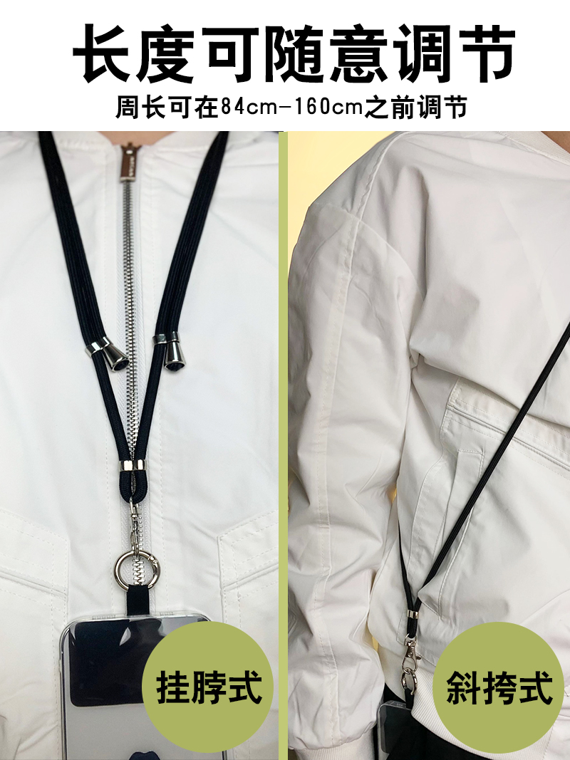 手机挂绳挂脖斜跨可调节可背带伸缩防丢个性创意时尚链手机壳挂绳防偷手机链夹片便携绳子长款男女不勒脖新款
