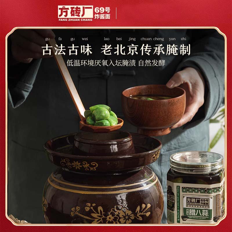 方砖厂69号翡翠腊八蒜糖醋蒜绿蒜醋泡蒜腊八蒜正宗下饭菜400g瓶装