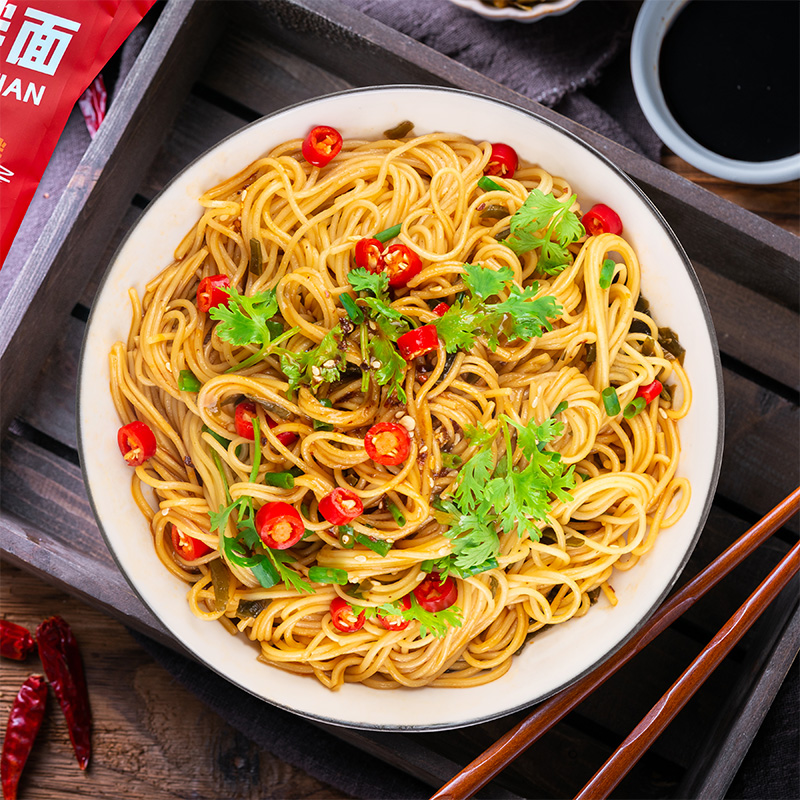 红油拌面凉面早餐干拌面条方便速食碱水面挂面含酱料198g麻酱袋装