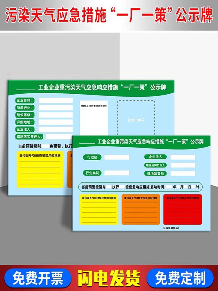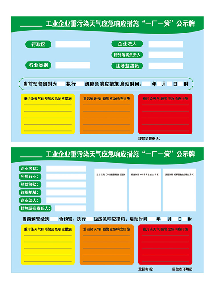 工厂一厂一策公示牌环境保护标识贴纸企业重污染天气应急警示牌展示板工业污染应急措施标识牌政策公告栏定制