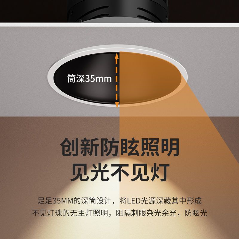 全光谱射灯嵌入式小山丘防眩洗墙灯客厅吊顶护眼无主灯深杯射灯