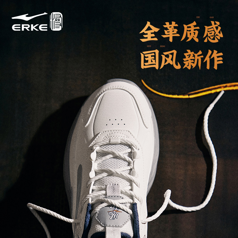 鸿星尔克凤求凰新款男鞋老爹鞋增高软底运动鞋革面休闲鞋秋冬鞋子