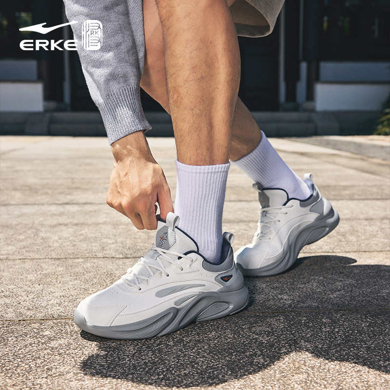 鸿星尔克男鞋运动鞋桀骜皮面秋冬休闲鞋轻便网面透气老爹鞋跑步鞋