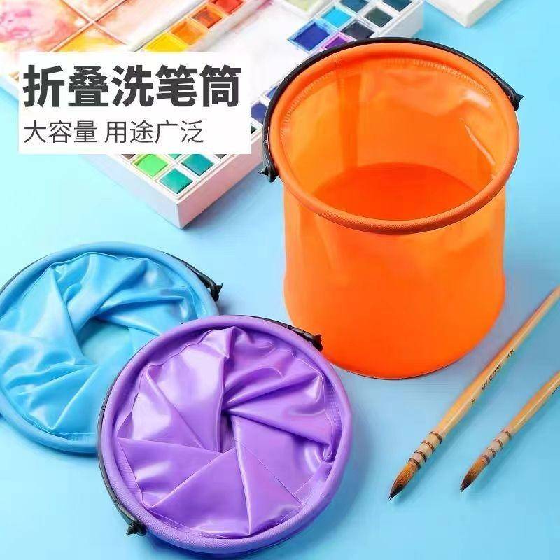 折叠水桶带隔层洗笔桶幼儿园儿童DIY美术绘画便携水粉颜料洗笔筒