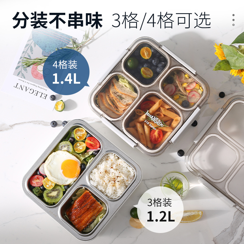 316不锈钢保温饭盒便当盒真空保温桶饭盒学生送饭户外餐盒 4格