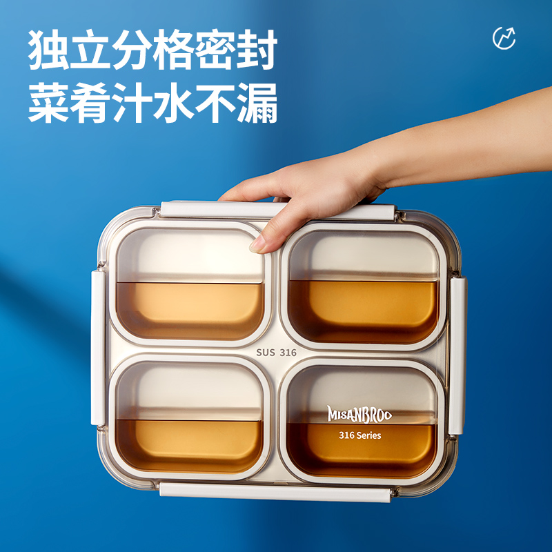 芬兰MISANBROO316不锈钢保温饭盒上班族大容量便当盒分隔学生餐盒
