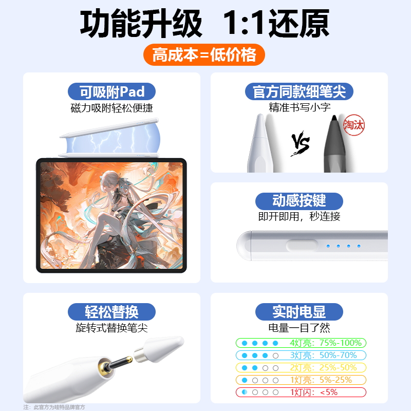 触屏电容笔手机平板通用触控笔尖头适用苹果华为小米applepencil磁吸ipad手写笔学生绘画剪辑安卓防误触替换