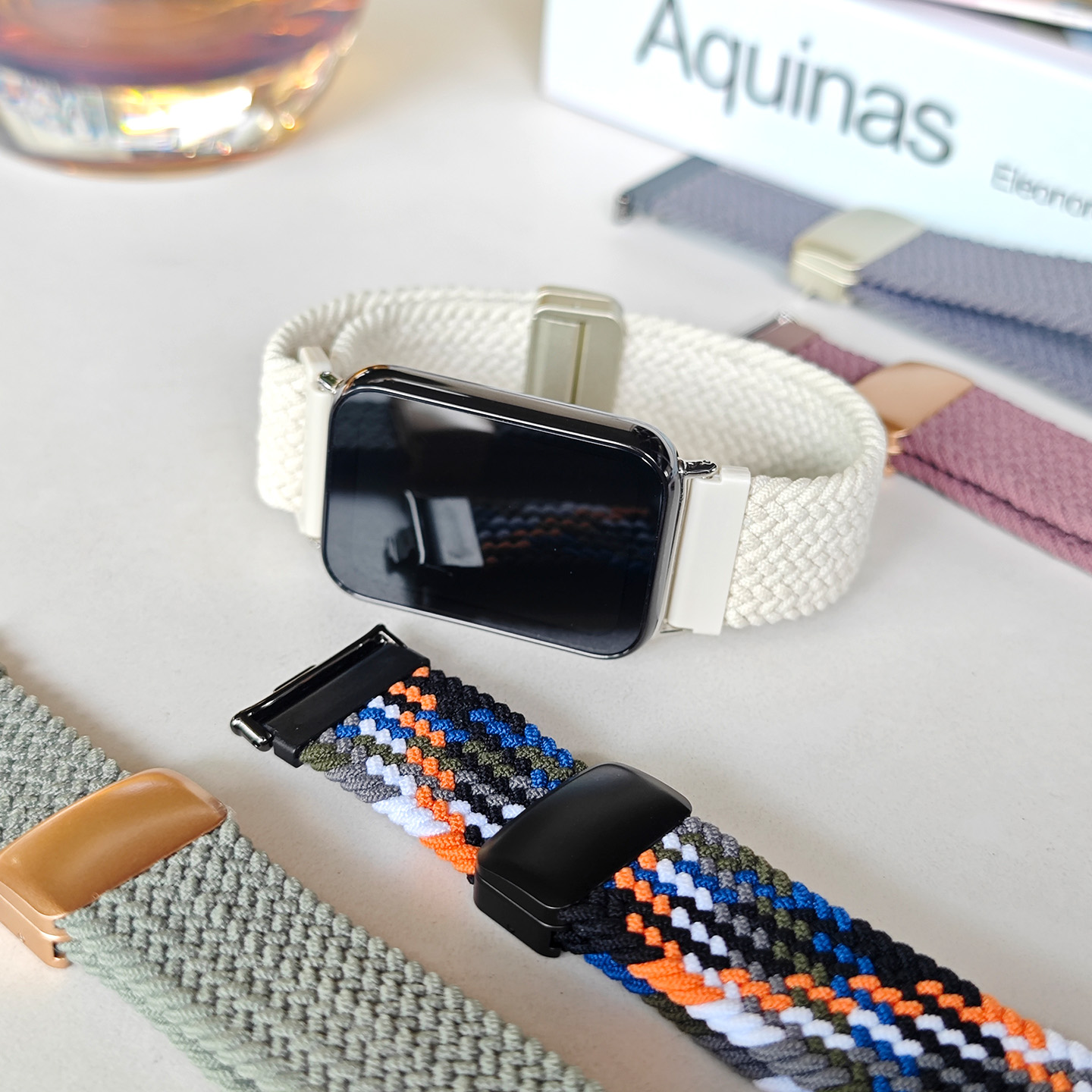 防过敏适用小米手环8pro/9pro智能表带磁吸编织夏季红米watch5手表带新款透气腕带尼龙彩虹黑色银色紫色回环