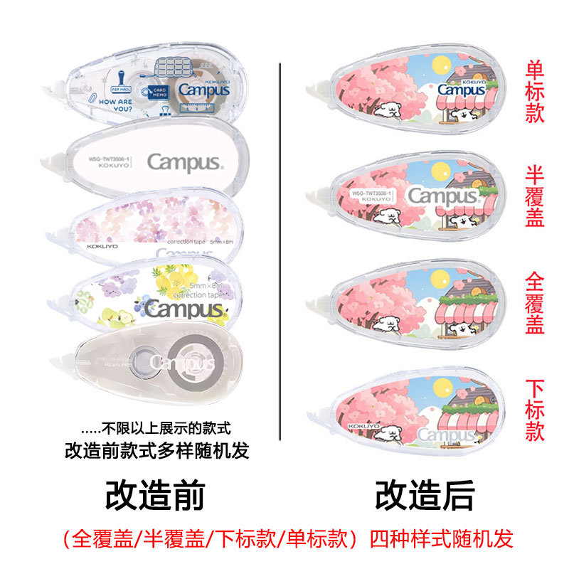 日本进口KOKUYO国誉线条小狗卡通可爱DIY修正带原纸色campus可替换芯涂改带女生高颜值小学生初中生改正带