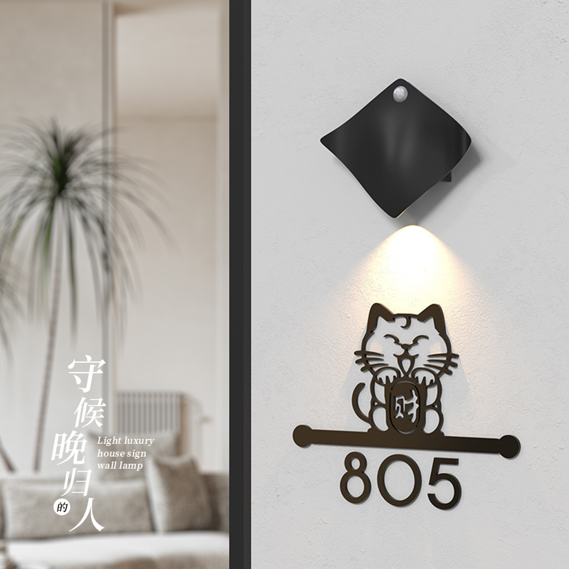 爱家入户门牌发光门牌号智能感应亮灯家用号码牌小区住宅房号牌入户门牌灯门口装饰灯牌门口人来即亮网红门贴