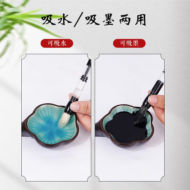 便携大楷吸水毛笔自动出墨书法专用自带墨水吸墨式狼毫初学中号学生灌水大中小大号小号自来水带墨囊的水写笔
