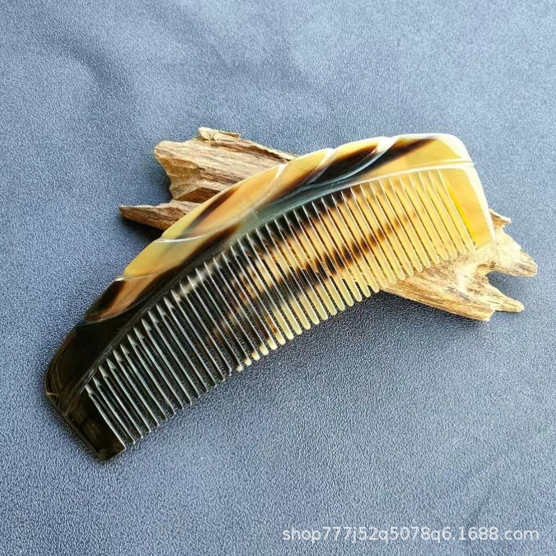 越南牛角梳加厚黑花牛角梳子半月无手柄按摩梳头疗刮痧