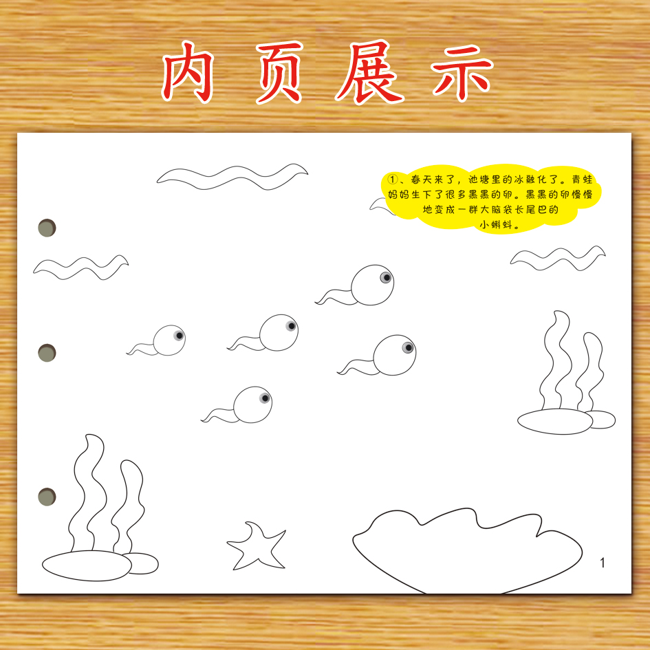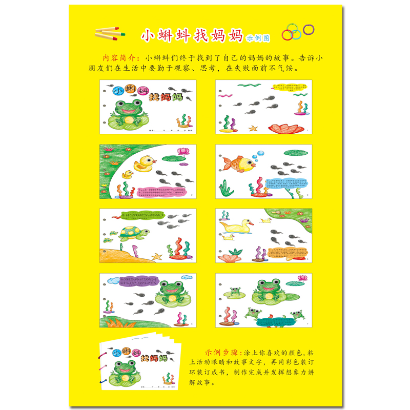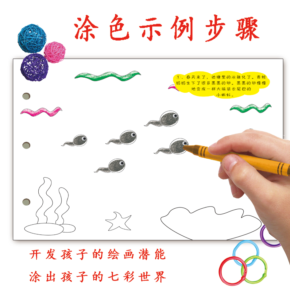 小蝌蚪找妈妈涂色卡纸儿童幼儿园自制绘本涂鸦填色A4卡纸diy手工操作材料包套装