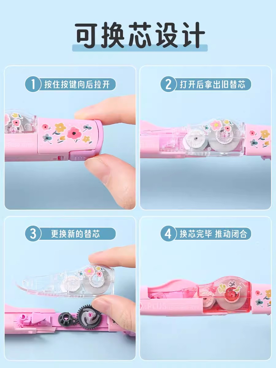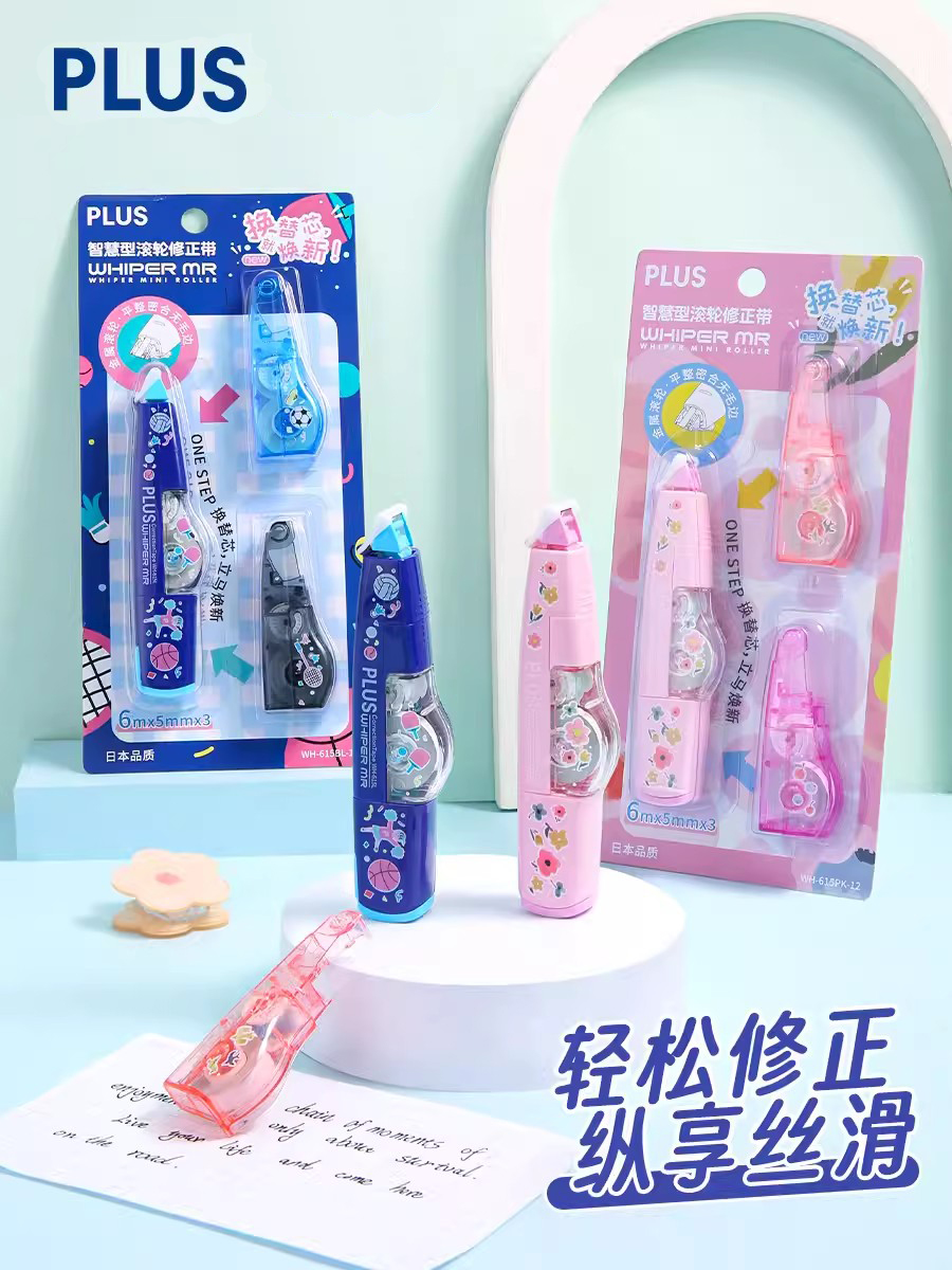 日本plus普乐士修正带花园运动会1+2限定套装可换替芯实惠涂改带学生用改正带进口不易断带纠错字WH-615