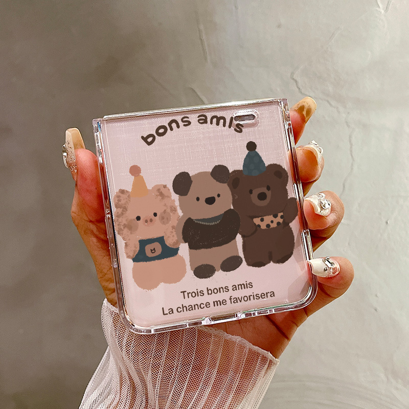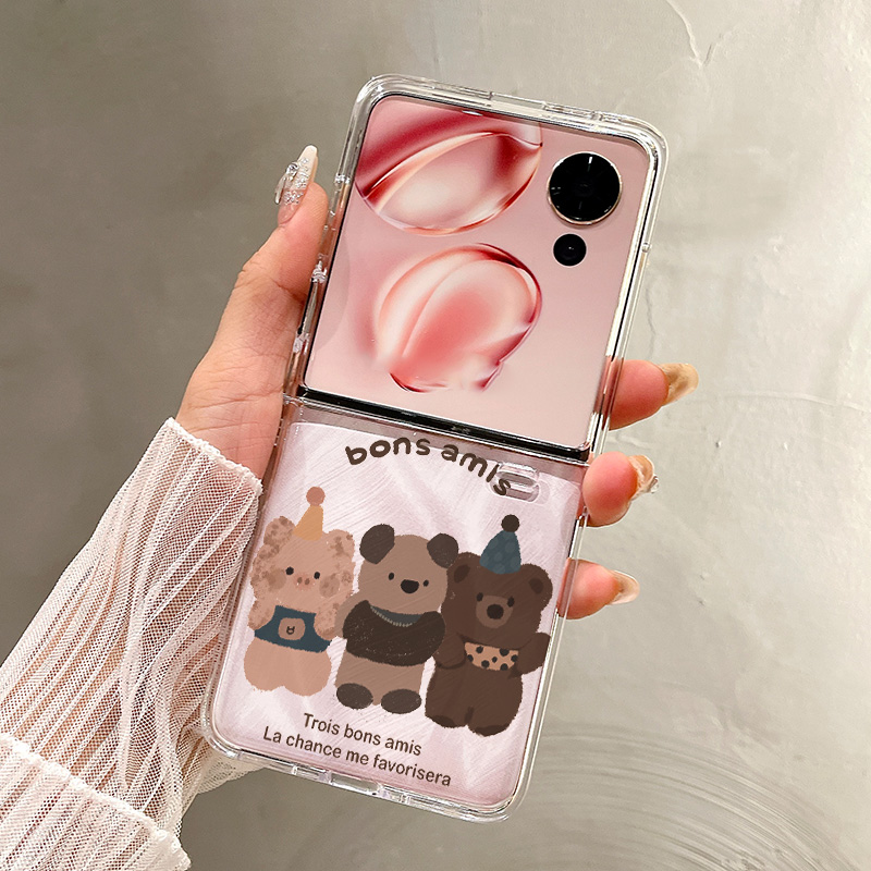 热瓜适用于荣耀MagicVFlip2手机壳折叠屏保护套高级感轻奢UV透明新款高档简约全包防摔套简约三只好朋友小熊