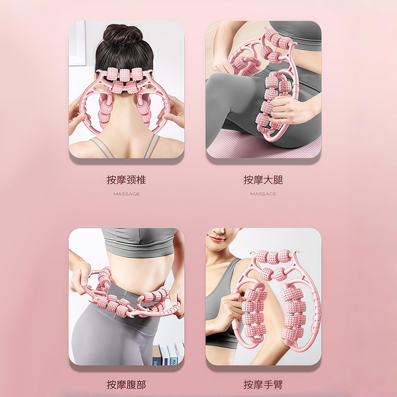 瑜伽狼牙按摩棒舒缓肌肉手持按摩棒四排全方位弯曲颈部腿部按摩器