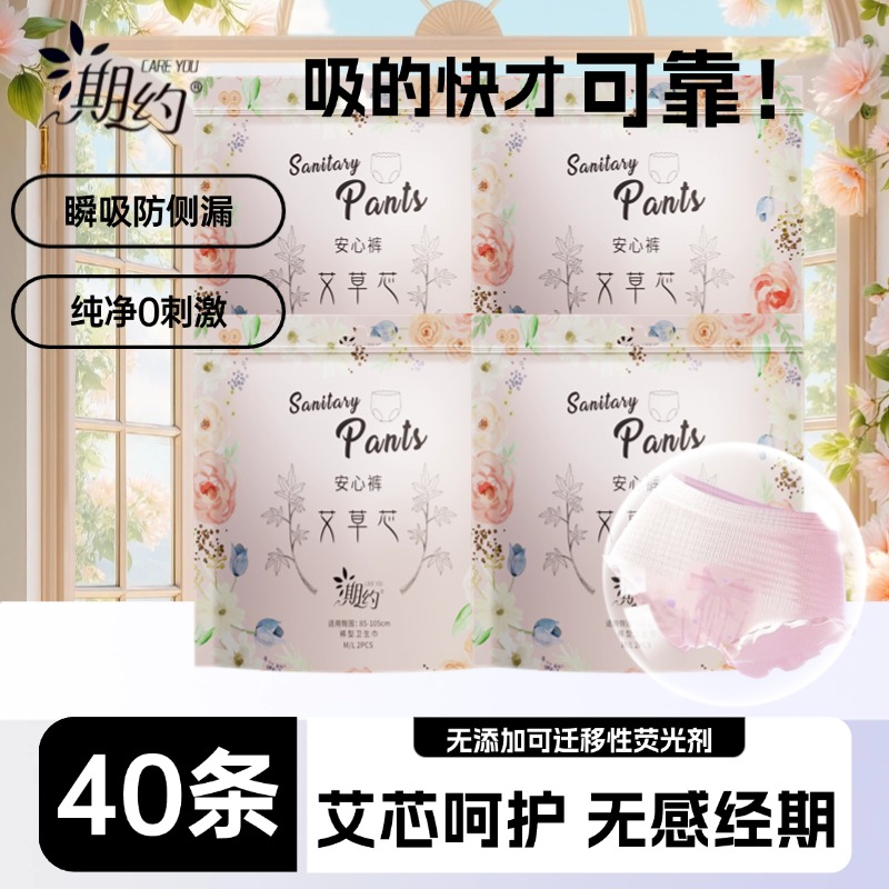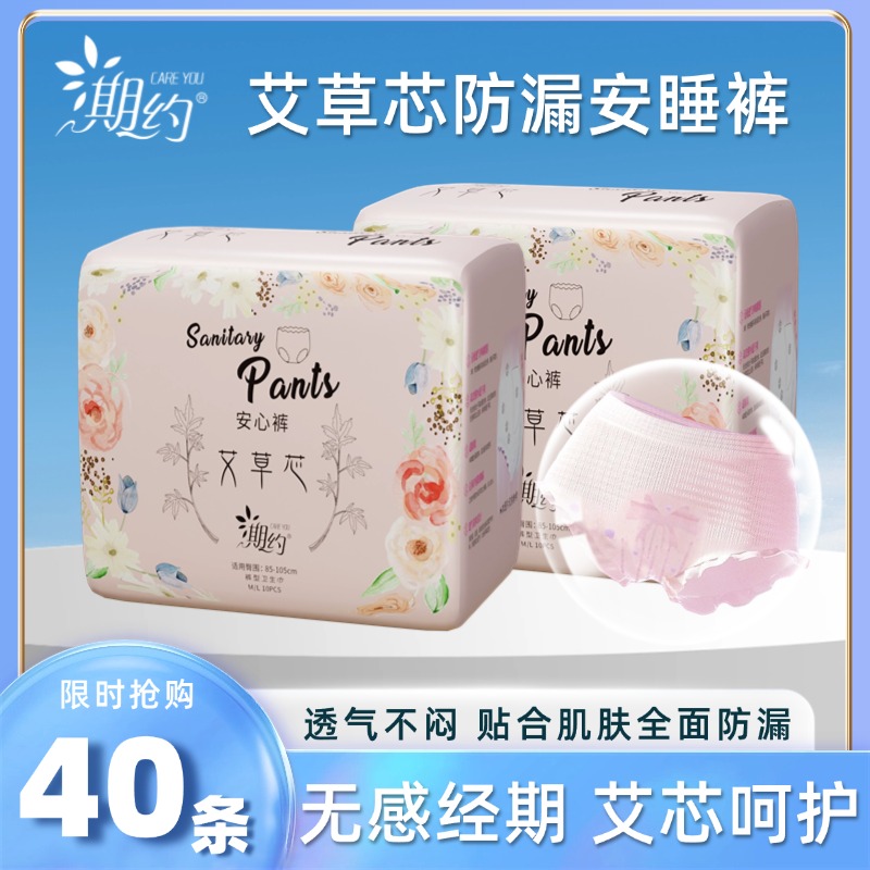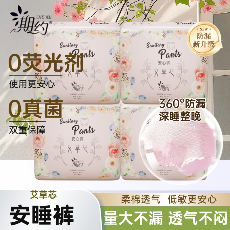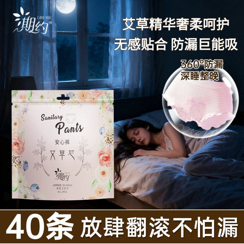 期约绵柔亲肤超薄透气安睡裤艾草芯呵护立体环腰设计净味防漏