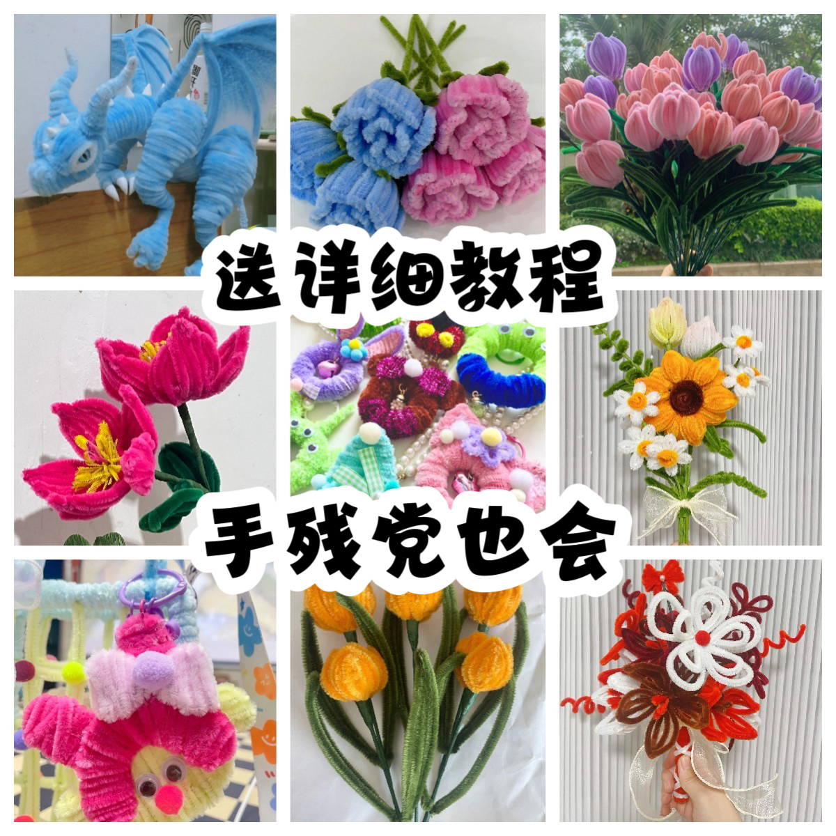 8mm超密绒条佰宁特密扭扭棒花特密加密毛根花束儿童手工diy材料包